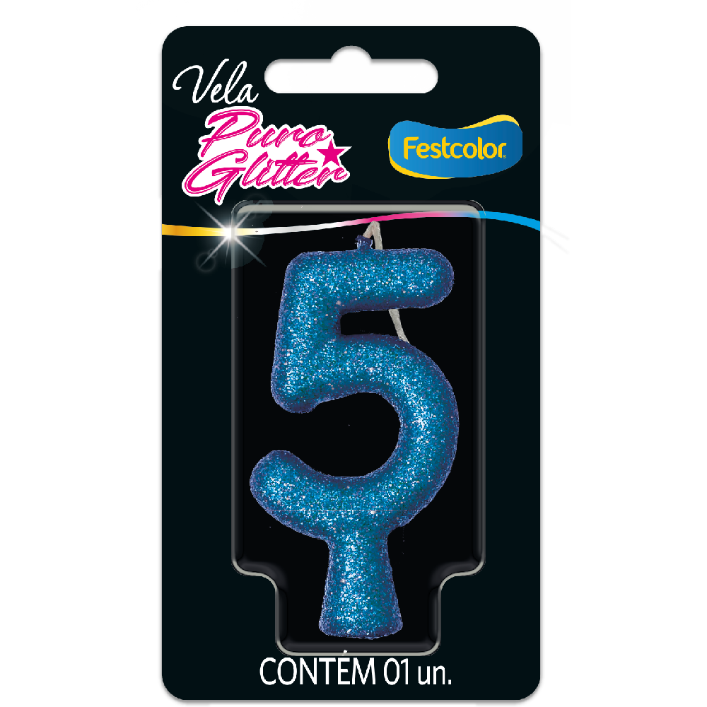 Produto Festcolor - VELA PURO GLITTER AZUL N° 5