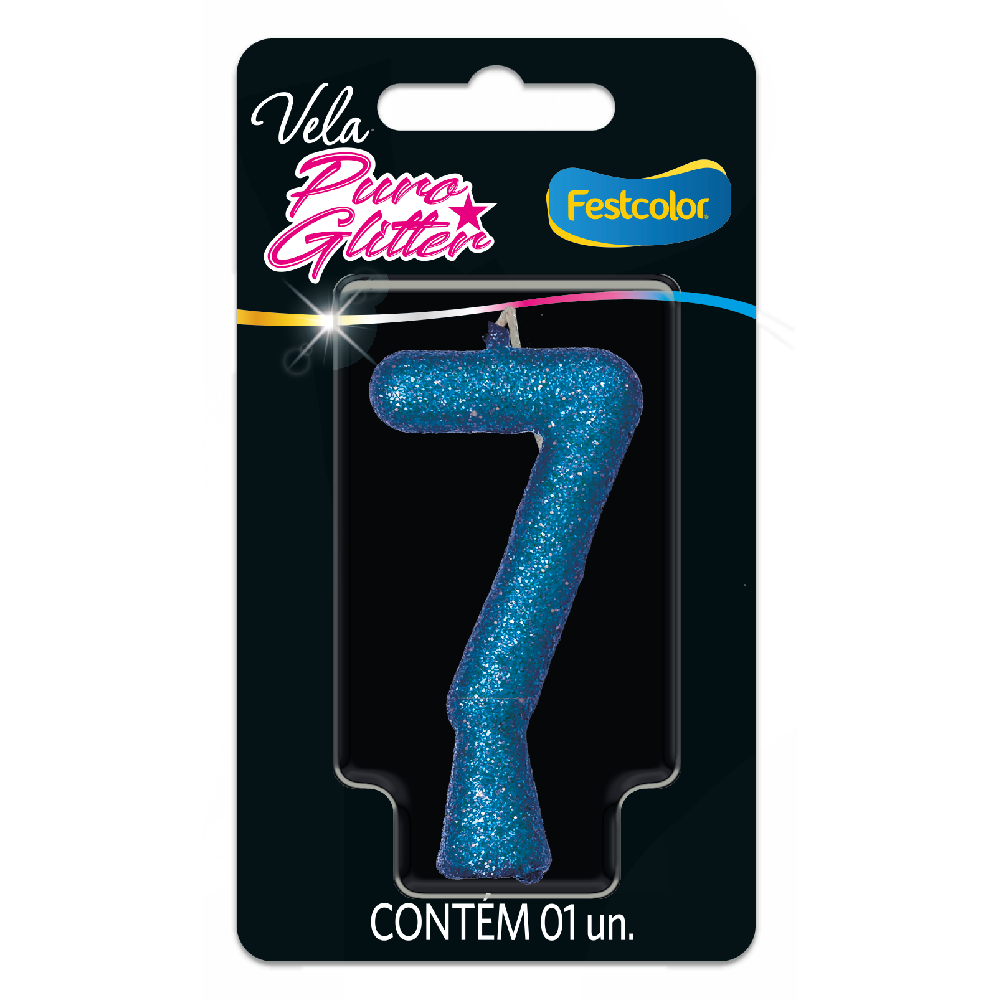 Produto Festcolor - VELA PURO GLITTER AZUL N° 7