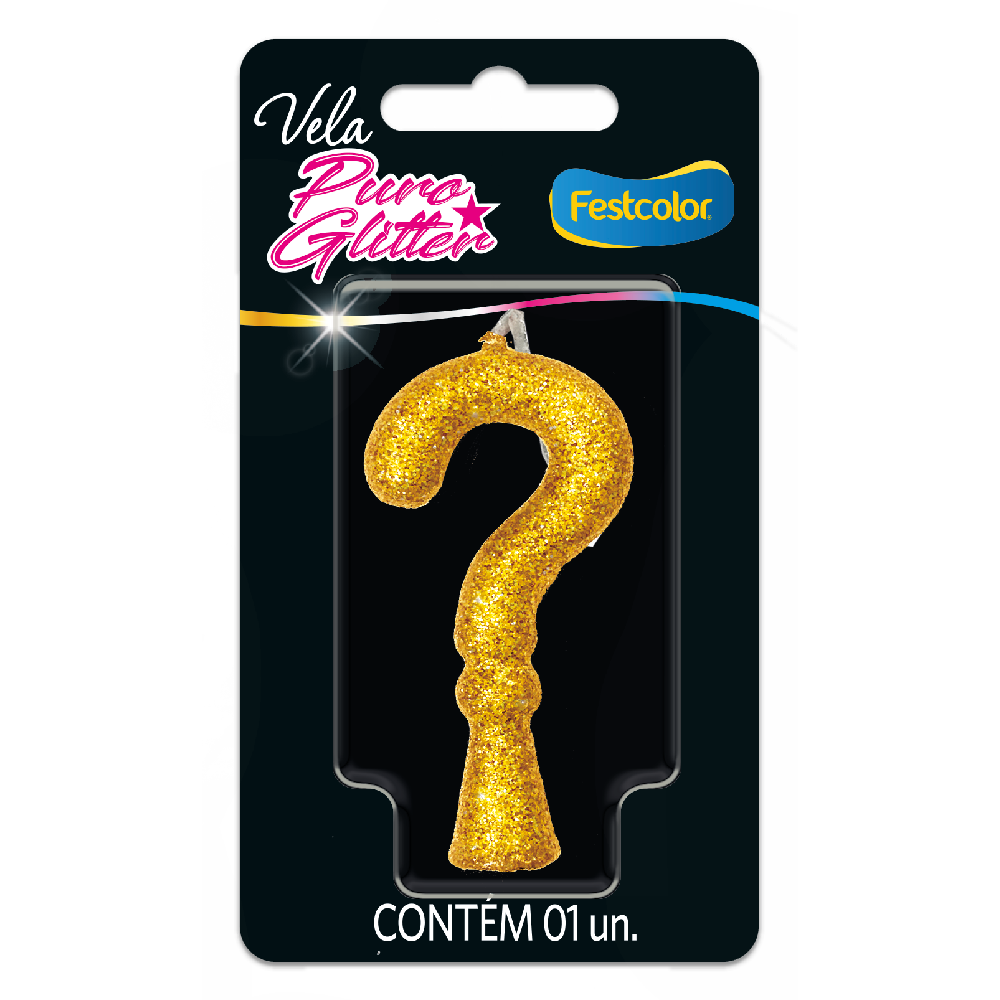 Produto Festcolor - VELA PURO GLITTER DOURADA INTERROGAÇÃO