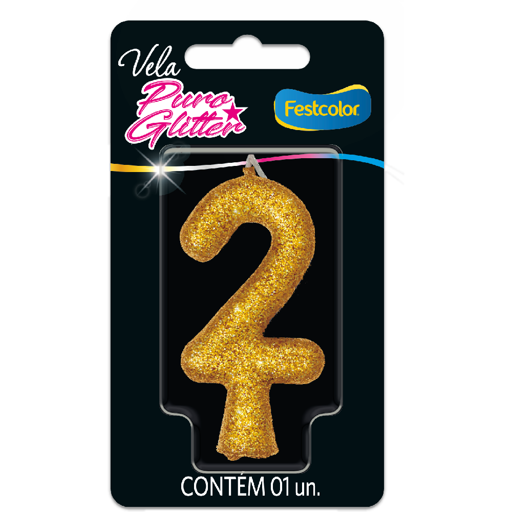 Produto Festcolor - VELA PURO GLITTER DOURADA N° 2