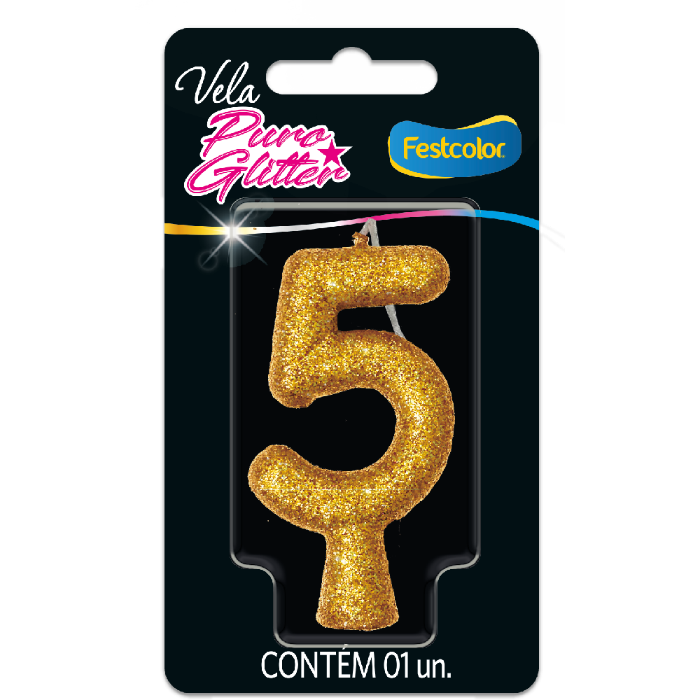 Produto Festcolor - VELA PURO GLITTER DOURADA N° 5