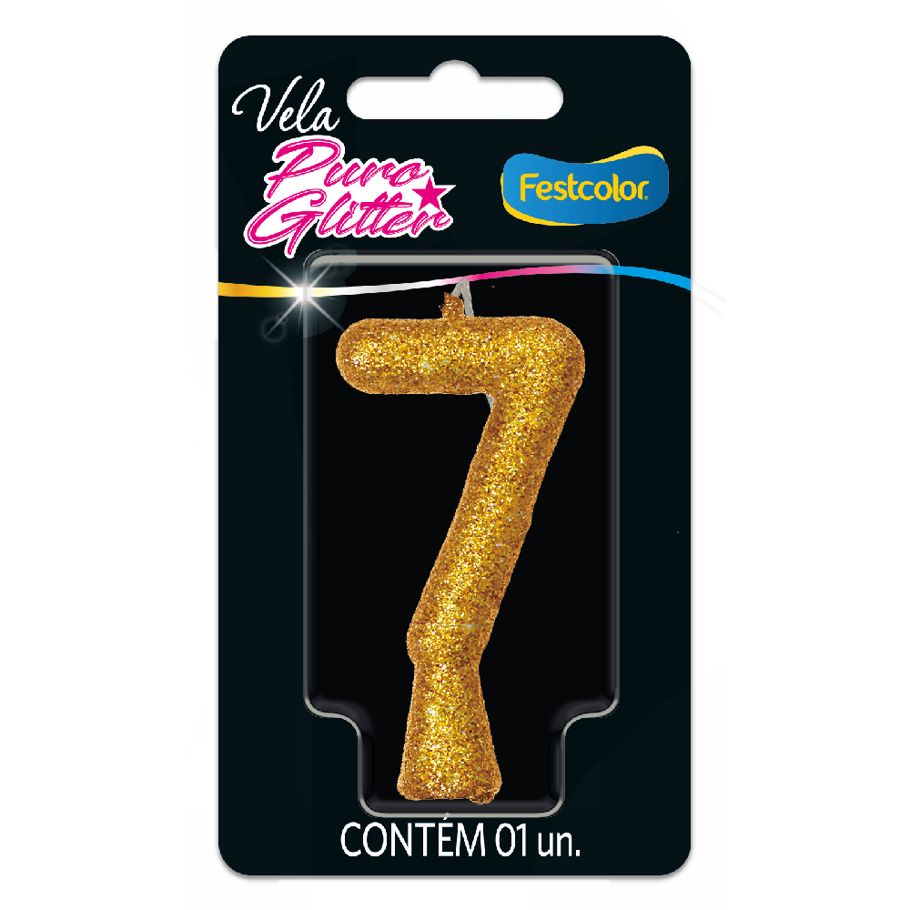Produto Festcolor - VELA PURO GLITTER DOURADA N° 7