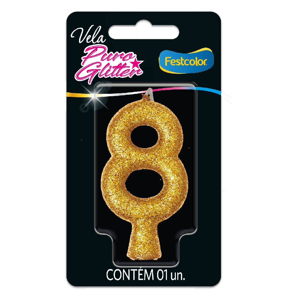 Produto Festcolor - VELA PURO GLITTER DOURADA N° 8