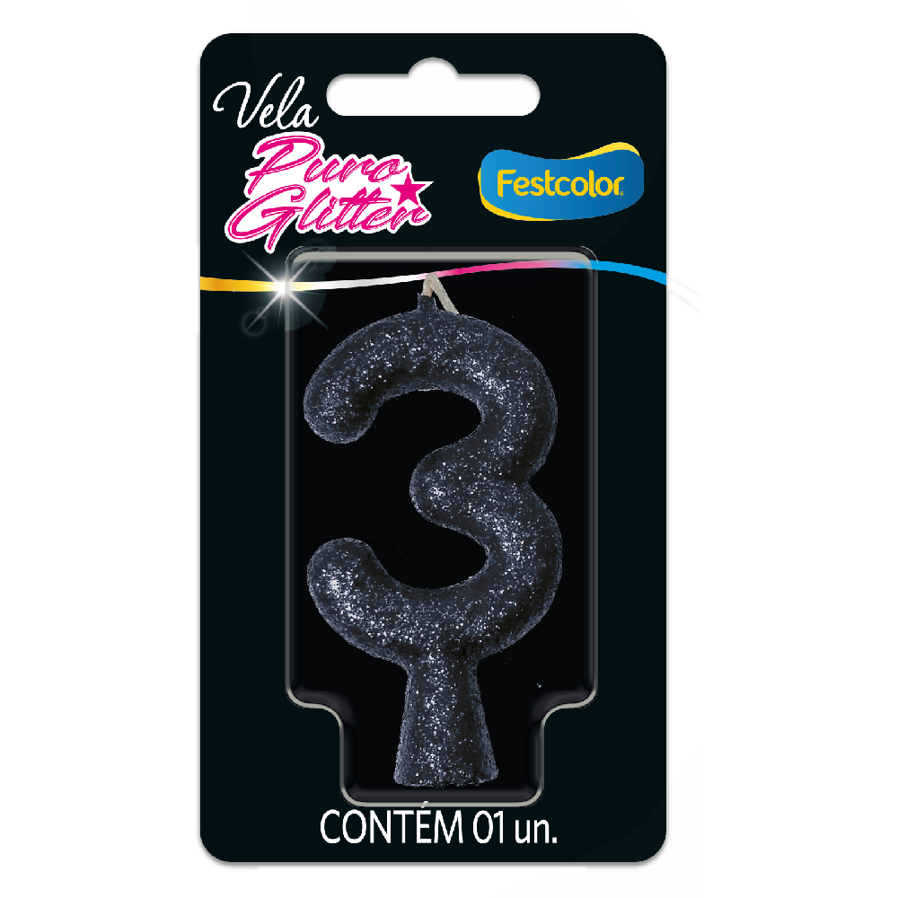 Produto Festcolor - VELA PURO GLITTER PRETA N° 3