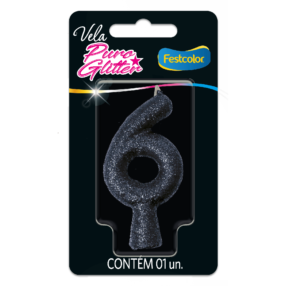 Produto Festcolor - VELA PURO GLITTER PRETA N° 6