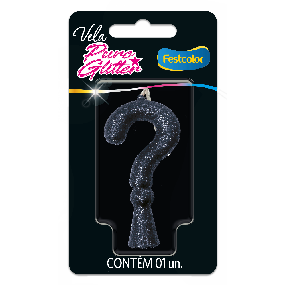 Produto Festcolor - VELA PURO GLITTER PRETA N°INTERROGAÇÃO
