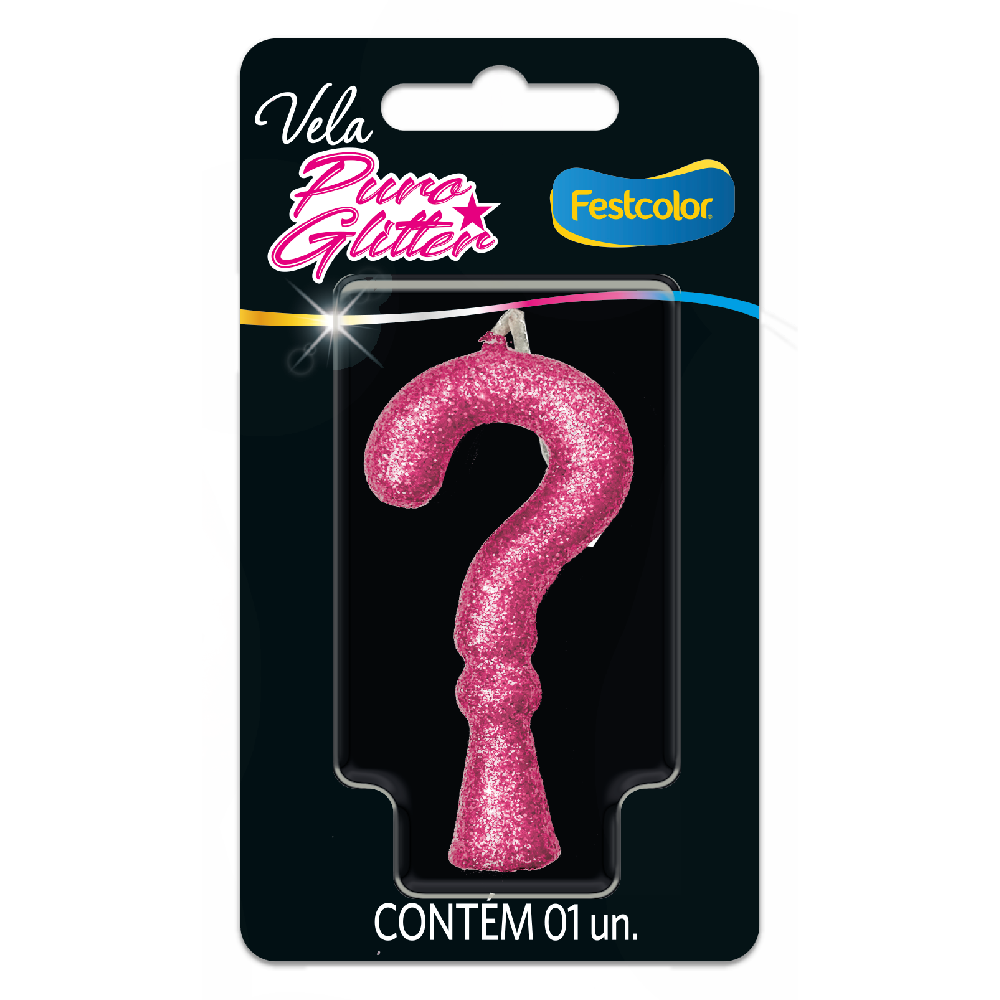 Produto Festcolor - VELA PURO GLITTER ROSA INTERROGAÇÃO