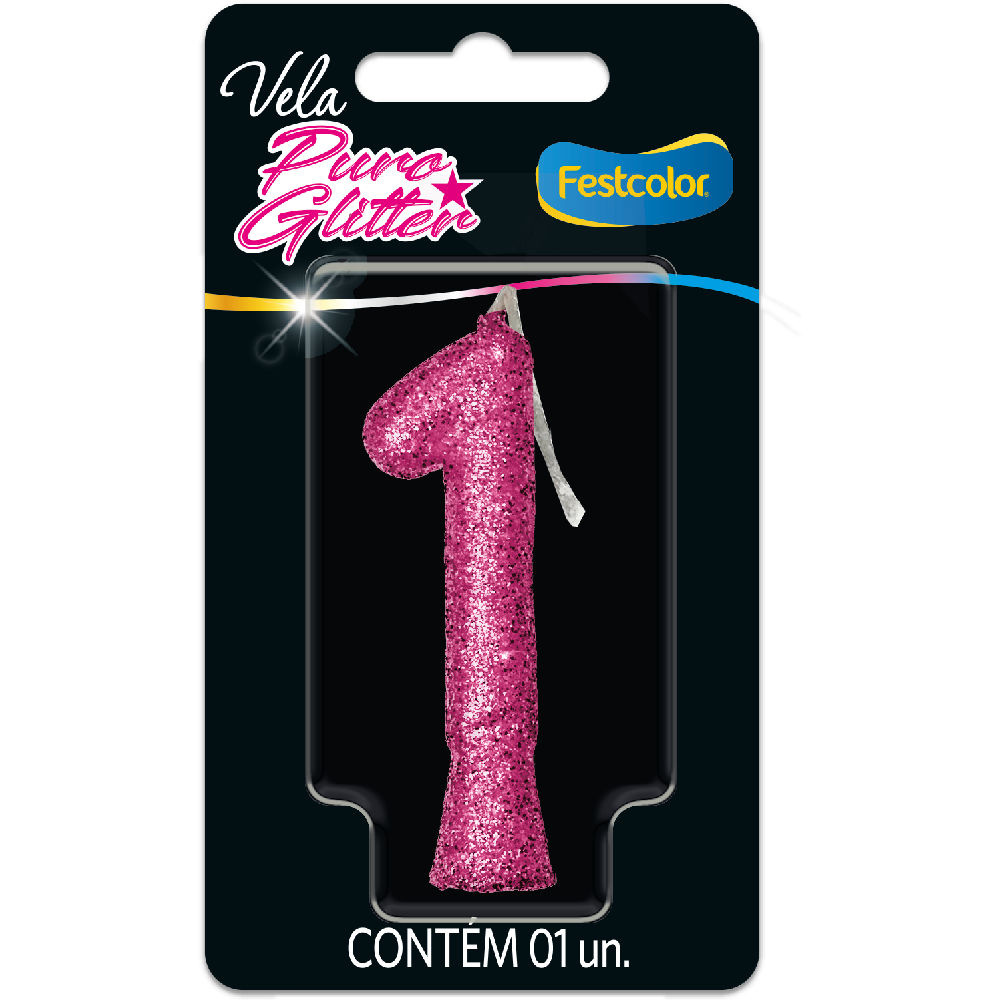 Produto Festcolor - VELA PURO GLITTER ROSA N° 1
