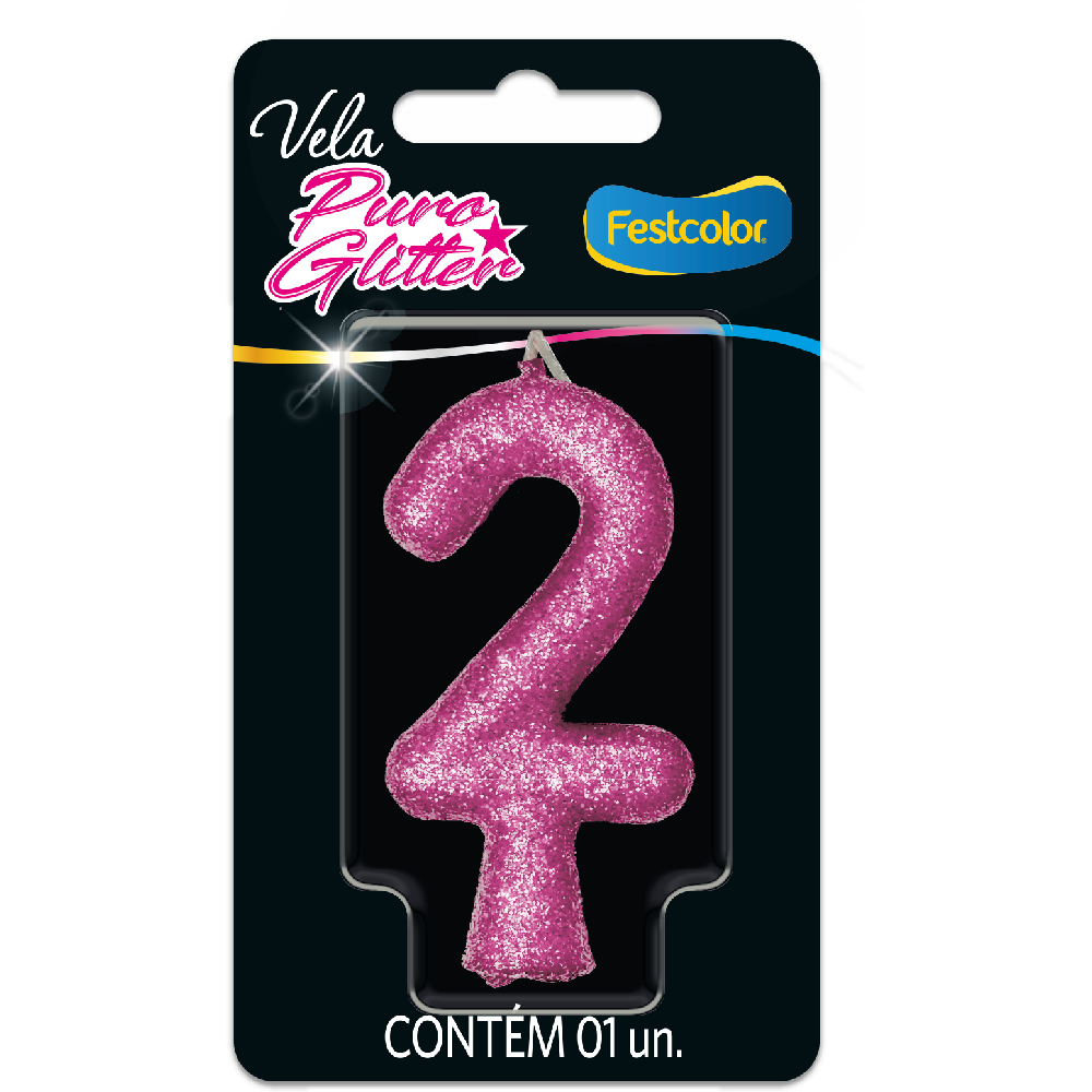 Produto Festcolor - VELA PURO GLITTER ROSA N° 2