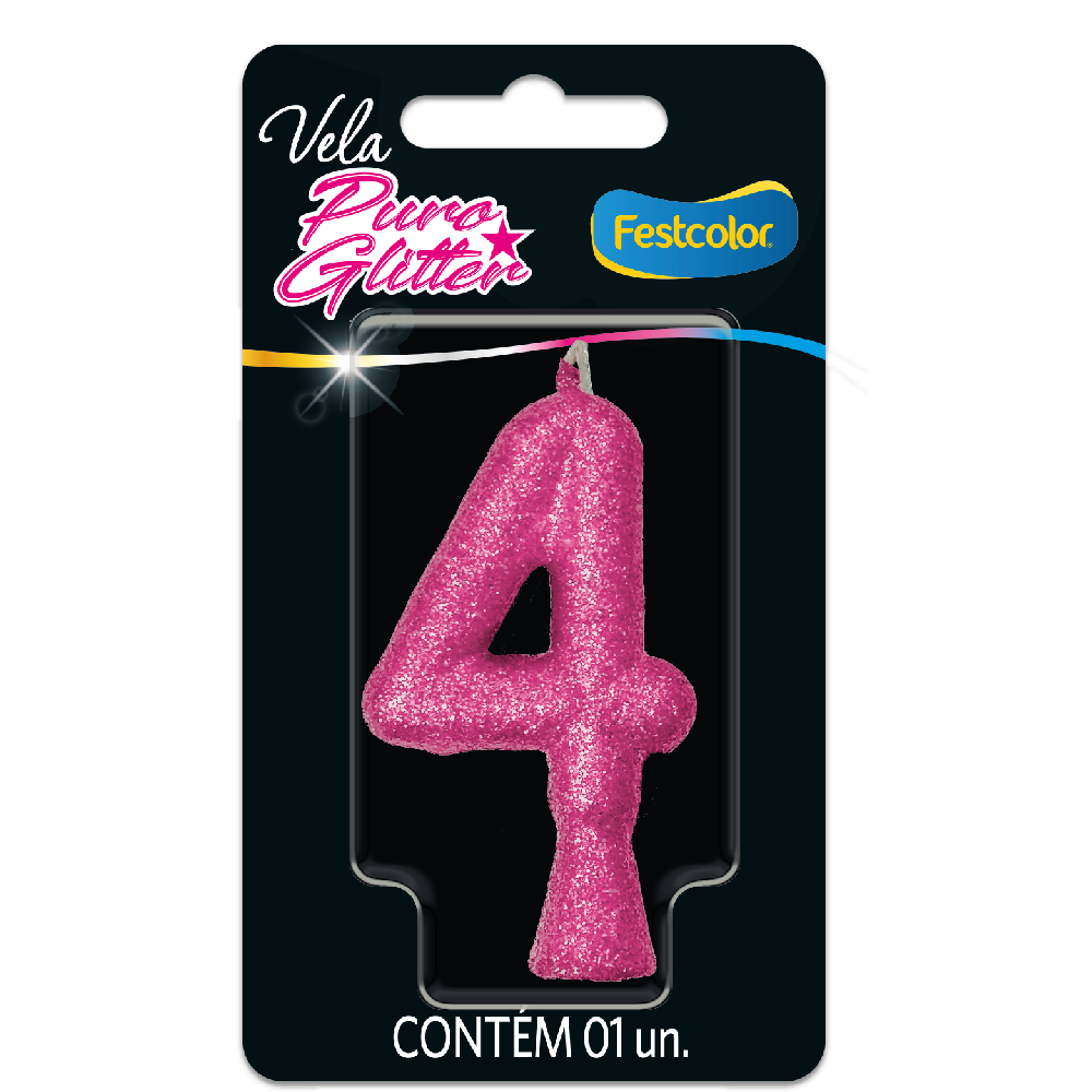 Produto Festcolor - VELA PURO GLITTER ROSA N° 4