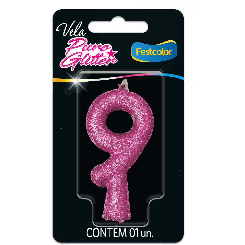 Produto Festcolor - VELA PURO GLITTER ROSA N° 9