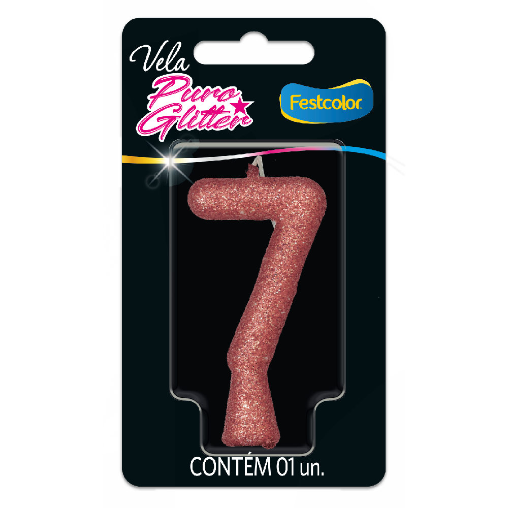 Produto Festcolor - VELA PURO GLITTER ROSE GOLD N° 7