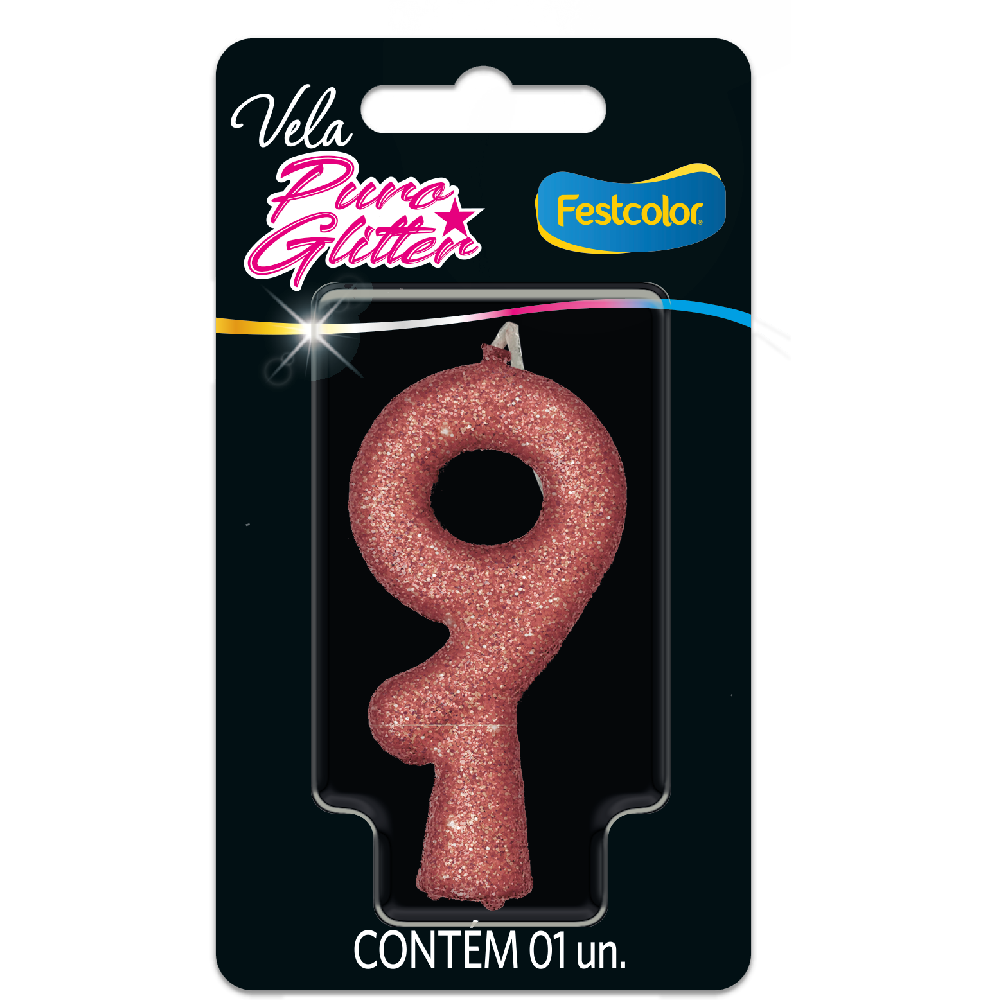 Produto Festcolor - VELA PURO GLITTER ROSE GOLD N° 9