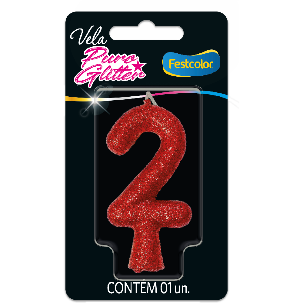 Produto Festcolor - VELA PURO GLITTER VERMELHA N° 2